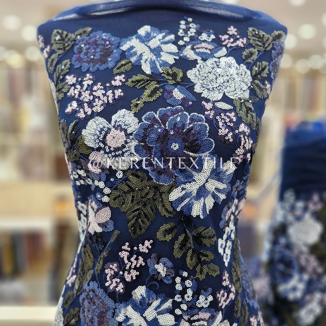- Tulle Payet dengan sentuhan Sequins Multiwarna yang cantik, dan membentuk motif kain dengan tampilan perpaduan motif Garden yang memukau